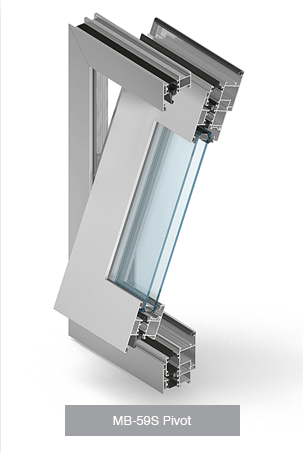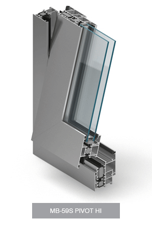 The MB-59S PIVOT system is designed for producing windows of vertical or horizontal rotation axis requiring thermal and acoustic insulation, economic structures, but also having good functional qualities. This type of windows is intended to be mounted both in brick wall openings and in mullion-transom facades.