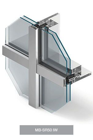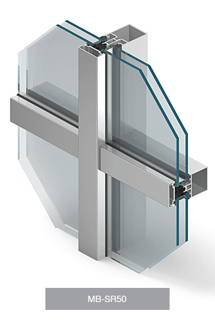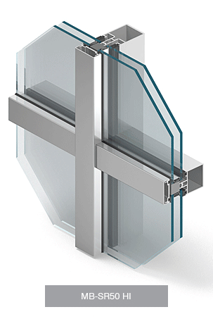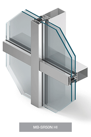 The MB-SR50N HI+ mullion and transom façade system has been designed to construct lightweight curtain walls of a hanging and filling type as well as roofs, skylights and other spatial constructions.